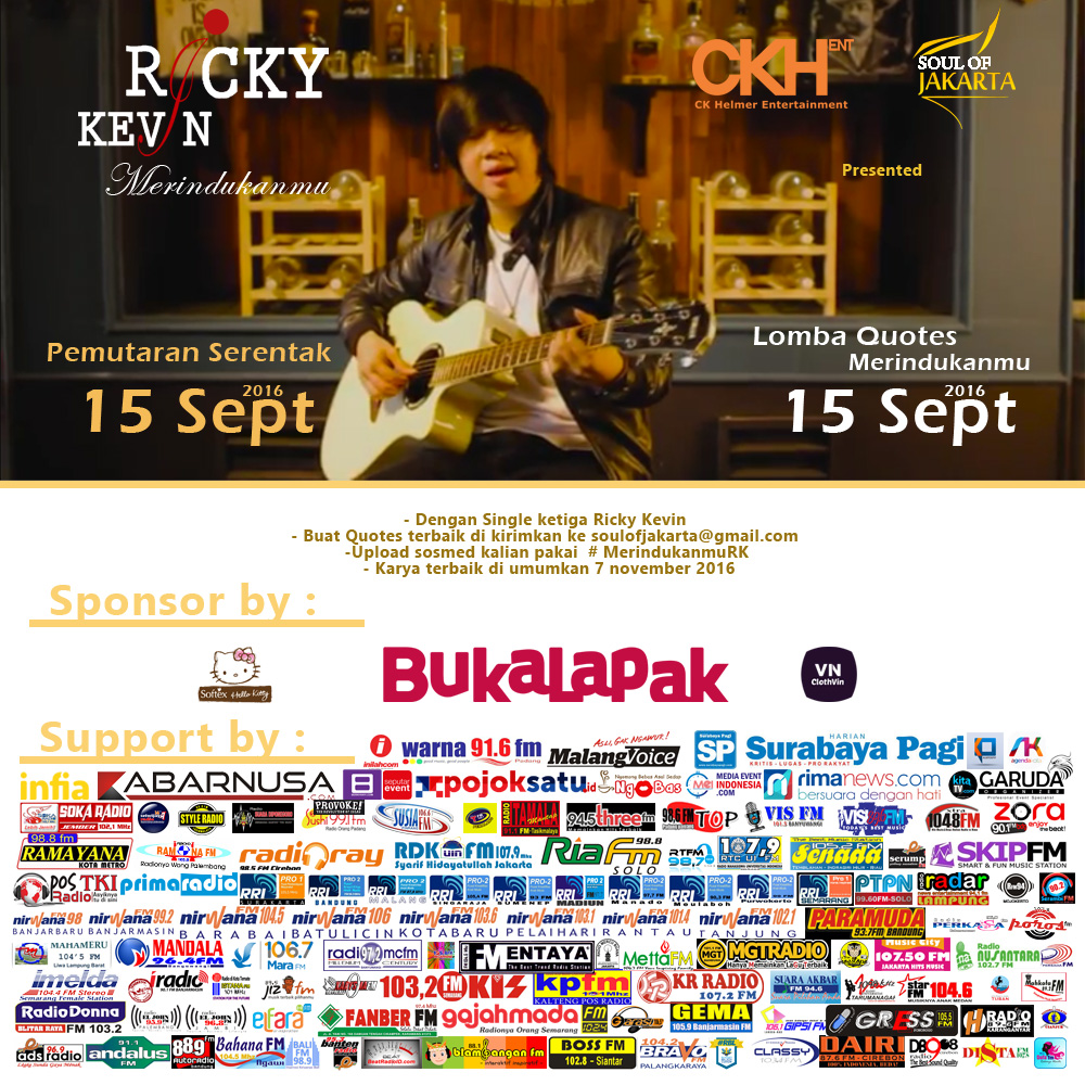 Share quotenya di facebook dan instagram dengan memberikan hastag #MerindukanmuRK, tag @ricky.kvn dan Facebook Soul of Jakarta. Peserta diperbolehkan submit maksimal 5 quotes. Lomba ini dimulai bertepatan dengan pemutaran serentak single ketiga Ricky Kevin, Merindukanmu tersebut.