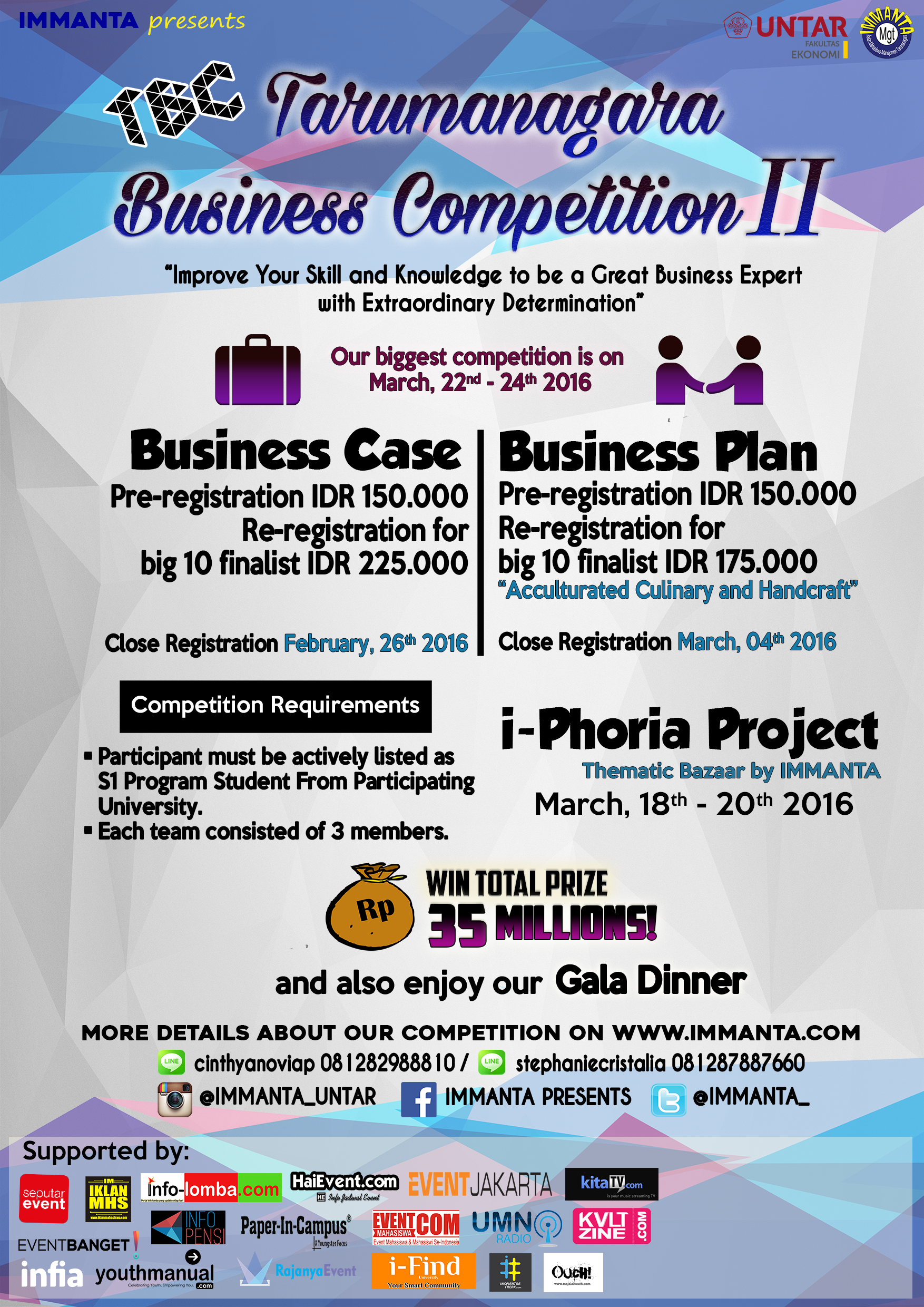 “It’s not about ideas, it’s about making ideas happen”. Get your chance and join us! Tarumanagara Business Competition II OPEN REGISTRATION! Don’t let your ideas sink, bring it to the surface. Brace yourself to the upcoming Tarumangara Business Competition II!