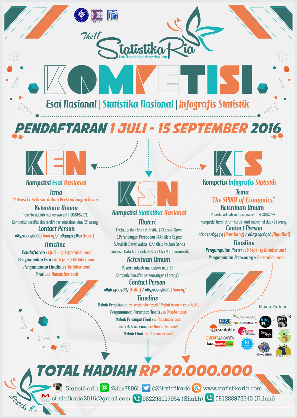 Pendaftaran kompetisi Statistika Ria dilaksanakan dari tanggal:
