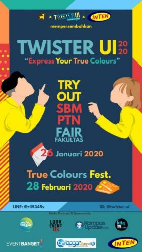 TWISTER UI juga akan mengadakan Fakultas Fair di mana kalian bisa bertanya mengenai informasi fakultas yang ada di UI. Selain itu, ada juga acara puncak bertajuk “True Colours Fest” yang pastinya tidak akan kalah seru!