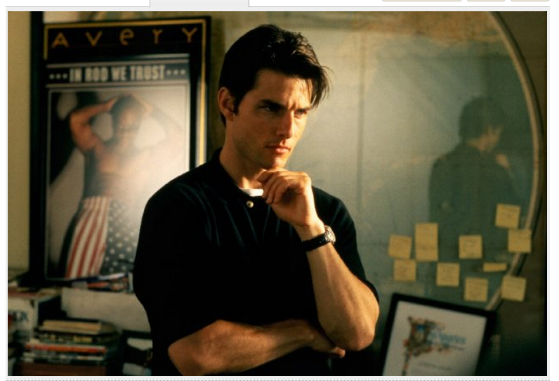 Film wajib ditonton calon wirausahawan pertama adalah Jerry M. Jerry, tokoh di film ini, mempunyai semuanya: karier yang baik yaitu sebagai agen olahraga, relasi yang luas, serta seorang pasangan yang baik. Suatu hari ia disadarkan bahwa sebagai seorang agen olahraga, uang bukanlah hal yang terpenting, namun yang terpenting adalah kepuasan klien. Sayangnya, tidak semua dari rekannya memiliki pendapat yang sama. Pada akhirnya, Jerry pun kembali berjuang dari nol meski seorang diri, demi mewujudkan apa yang inginkan.
