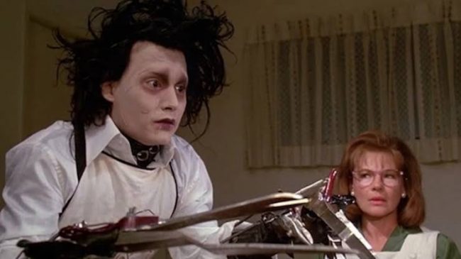 Bersama dengan Ed Wood, Edward Scissorhands adalah salah satu dari dua film Tim Burton yang paling sukses dan juga dikenal sebagai film dongeng untuk penonton dewasa. Burton menceritakan kisah tentang seorang pemuda buatan manusia yang penciptanya (Vincent Price dalam peran terakhirnya) meninggal sebelum dia bisa menyelesaikan putra penggantinya. Hanya saja, putra buatannya yang terinspirasi dari dongeng Frankenstein ini memiliki tangan yang tidak sempurna yakni berwujud gunting yang tajam.