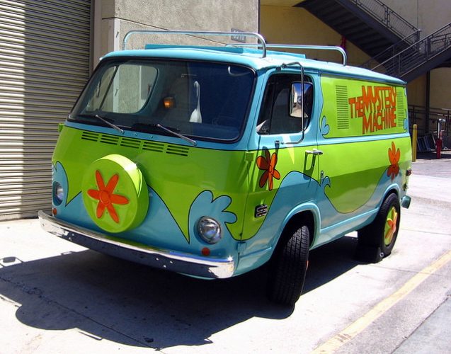 Dengan gaya hipsternya, Ford Econoline dengan dominan warna biru dan hijau dengan motif bunga-bunga dan bernama The Mystery Machine ini menjadi mobil ikonik dari film Scooby Doo. Ya, mobil ini digunakan oleh Scooby beserta teman-temannya dalam memburu hantu dan juga mengungkap misteri dari mereka yang memanfaatkan kisah hantu untuk tujuan tertentu. Mobil berjenis Van ini memang mampu mengangkut banyak orang.