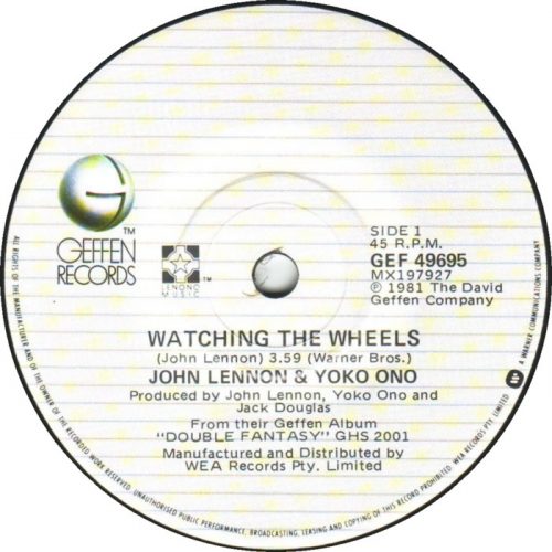 Watching The Wheels menjadi penutup lagu terbaik John Lennon. Apa yang spesial dari lagu ini adalah kamu bisa melihatnya tersenyum di dalam video klipnya. Menceritakan sosok Lennon sebagai seorang ayah yang hidup bersama dengan anak satu satunya. Namun untuk musisi sekaliber Lennon hal itu bukanlah satu satunya yang menjadikan lagu ini berada di posisi kedelapan, namun seperti biasa makna filosofis kehidupan yang menjawab kritis bagaimana seseorang yang terkenal dengan kehidupan yang serba hingar bingar bisa melepas semua itu dan memilih kehidupan yang biasa biasa saja.