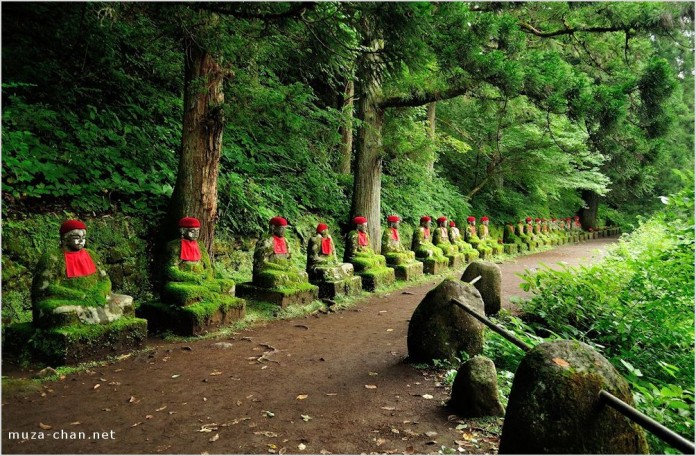 Salah satu contohnya adalah deretan patung-patung dari Kanmangafuchi Abyss di Nikko, salah satu tempat yang sangat indah: patung Jizo berderet sepanjang jalan melalui hutan, sepanjang sungai yang mengalir deras. Dedaunan yang memenuhi hutan sangat rimbun dan jalannya terasa agak misterius, terutama pada saat sore hari dan cahaya mulai memudar.