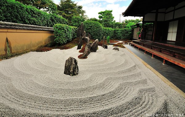 Foto di bawah ini adalah salah satu contoh taman Zen, Dokuza-tei, “Taman Meditasi Pertapa”, di Zuiho-in, Kyoto. Didesain pada 1961 oleh seorang master bernama Shigemori Mirei.