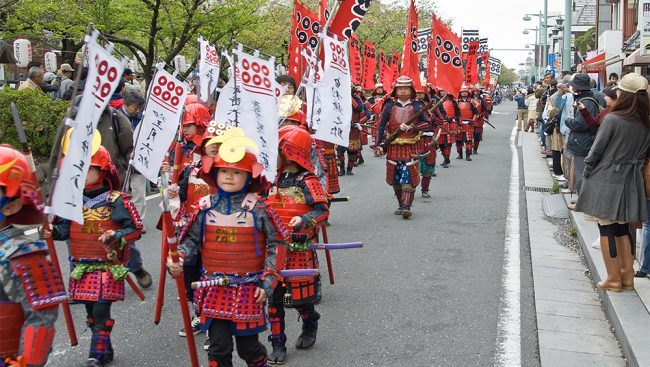Yabusame juga, itu juga merupakan kebangkitan keterampilan samurai menembak panah di atas punggung kuda di abad pertengahan. Sambil mengendarai kuda di jalan sepanjang sekitar 200 meter, pemanah menembakkan sebuah anak panah pada target. Konon Minamoto-no-Yoritomo muncul dengan ide acara ini sebagai sebuah festival kuil dengan tujuan memperkuat kekuatan mental para prajurit samurai. Namun sayangnya, makin sedikit saja pemanah yang memiliki kemampuan canggih seperti itu saat ini. Sebuah acara yabusame berskala besar juga diadakan pada bulan September.