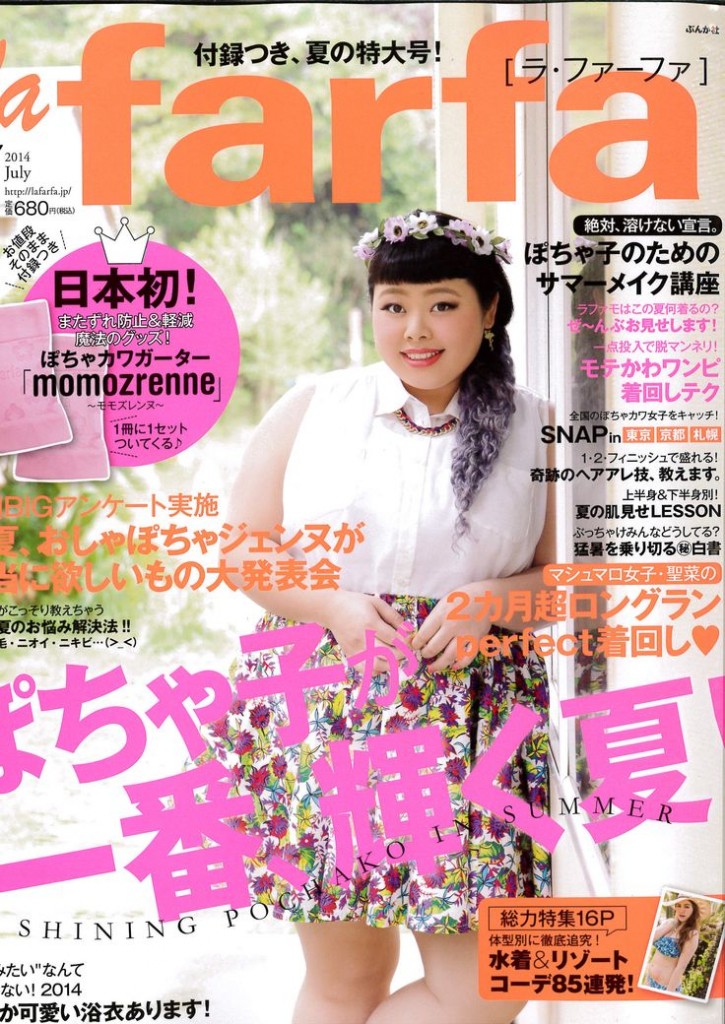 Menurut La Farfa, sebuah majalah fashion ukuran plus pertama di Jepang, untuk memenuhi syarat sebagai model untuk majalah mereka pakaian Anda harus berada di sekitar ukuran XL sampai 8XL dan Anda harus memberikan izin kepada majalah itu untuk mencantumkan berat badan Anda.