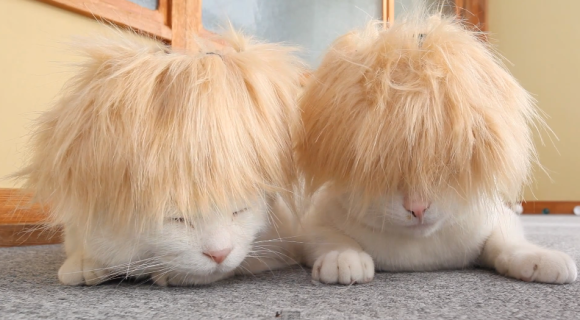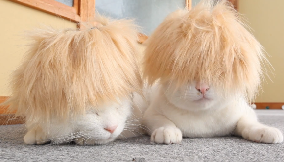 Mereka tampaknya sama sekali tidak terpengaruh oleh wig mini yang ditempatkan di atas kepala mereka, dan hanya melihat ke atas saat teman kucing lain mereka datang dan pemilik mereka melakukan sesuatu untuk menarik perhatian mereka.