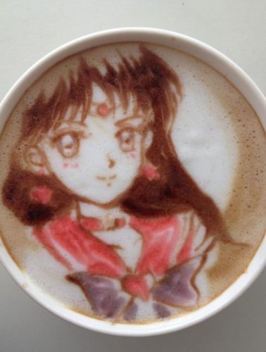 Jika Anda berpikir bahwa seni latte berbentuk hati atau daun adalah suatu keahlian yang keren, desain-desain Sugi mungkin akan membuat Anda terkesima. Barista Jepang berbakat ini baru saja memulai seni kopinya bulan April tahun lalu, namun ia telah dapat menciptakan potret-potret berbagai karakter anime populer seperti Sailor Moon atau Dragon Ball dengan detil yang menakjubkan.