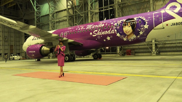 Maskapai penerbangan lokal Peach Aviation meluncurkan rute Narita pertamanya baru-baru ini dengan penerbangan yang kini membawa penumpang dari Osaka ke Tokyo dengan tarif hanya 4.000 yen sekali jalan. Untuk merayakannya, mereka meminta bantuan mantan putri AKB48 Mariko Shinoda untuk memromosikan layanan tersebut dan bahkan secara khusus menghias seluruh badan pesawat itu sesuai dengan kesukaannya!
