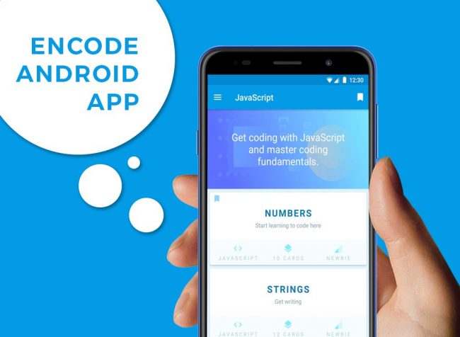 Encode adalah salah satu rekomendasi aplikasi belajar coding terbaik dari Android. Aplikasi ini menyediakan pembelajaran coding berbasis JavaScript. Aplikasi Android ini direkomendasikan karena sangat menarik untuk pemula.