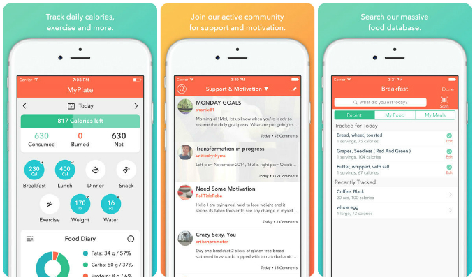 Selanjutnya untuk aplikasi untuk diet terbaik ada MyPlate Calorie. Aplikasi ini disebut sebut sebagai aplikasi yang memiliki desain paling ramah pengguna yang bisa kamu gunakan. Aplikasi ini akan menunjukkan mana saja aplikasi yang banyak memiliki kalori dan juga tak lupa untuk mengawasi jumlah asupan air dalam tubuh yang kamu minum.