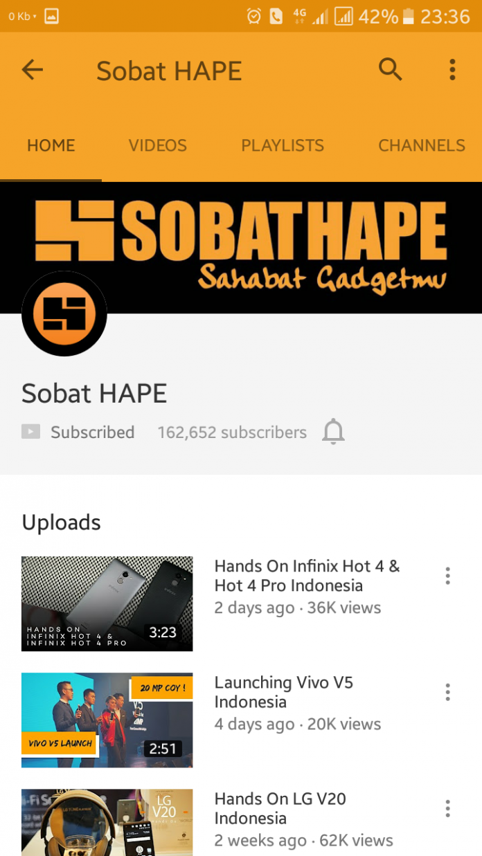 Channel-Review-Gadget-Paling-OK-Berbahasa-Indonesia-1Sobat HAPE adalah salah satu channel review gadget paling OK Berbahasa Indonesia. Bagaimana tidak, channel ini sudah memiliki 162.652 subscribers dan memiliki 340 video review baik gadget maupun smartphone. Sobat HAPE pada umumnya memberikan review pada smartphone saja, namun terkadang juga ada disisipi beberapa review gadget seperti tablet, smartband dan perangkat audio.