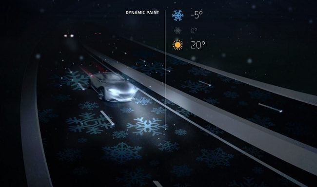 Cahaya itu diciptakan menggunakan bubuk foto bercahaya dicampur dengan cat jalan dan merupakan langkah pertama dari visi mulia yang mencakup hal-hal seperti tanda cuaca yang hanya akan terlihat di bawah kondisi cuaca tertentu. Salah satu contohnya adalah tanda kepingan salju yang akan muncul setelah suhu turun di bawah ambang batas tertentu.